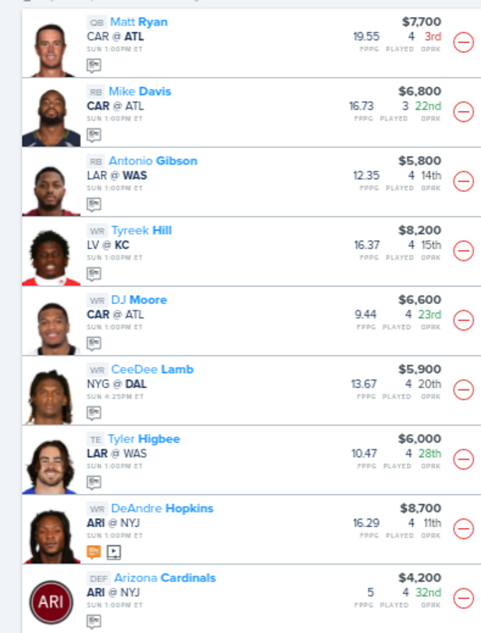 GIbson gets a new QB this week in Kyle Allen, and we saw what Allen did to McCaffrey’s value last year with the Panthers. Gibson should benefit from an uptick in targets in the passing game.