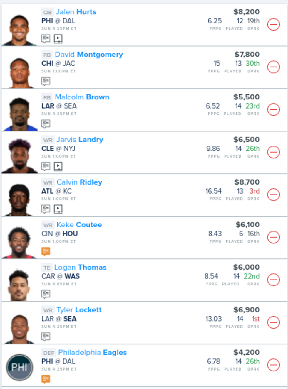 Coutee had his 2020 breakout last week. With the Texans getting the Bengals this week, Coutee is an under the radar sleeper who could pay off big dividends as a WR3 in lineups. We’ll take advantage of that this week while we’re building this entry.