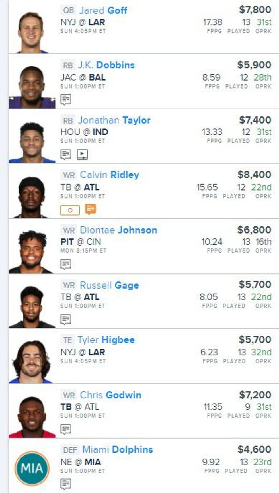 Jared Goff (QB) – $7800