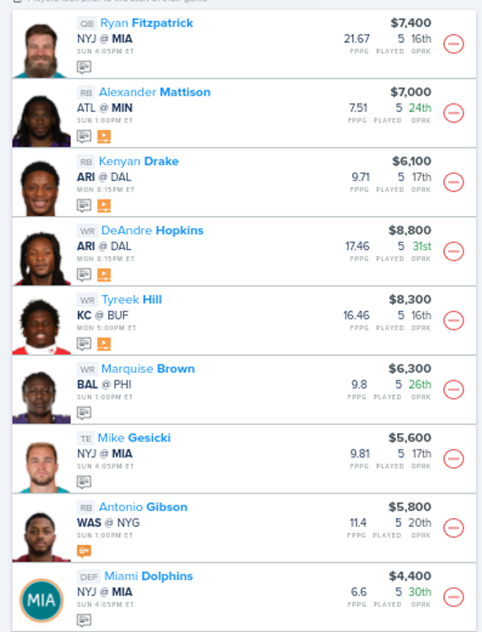 FINALLY, we had the Kenyan Drake breakout game we've been waiting for. He burned us in Week 4 against the Panthers. He gets Dallas, who just gave up 34 points to the Giants.