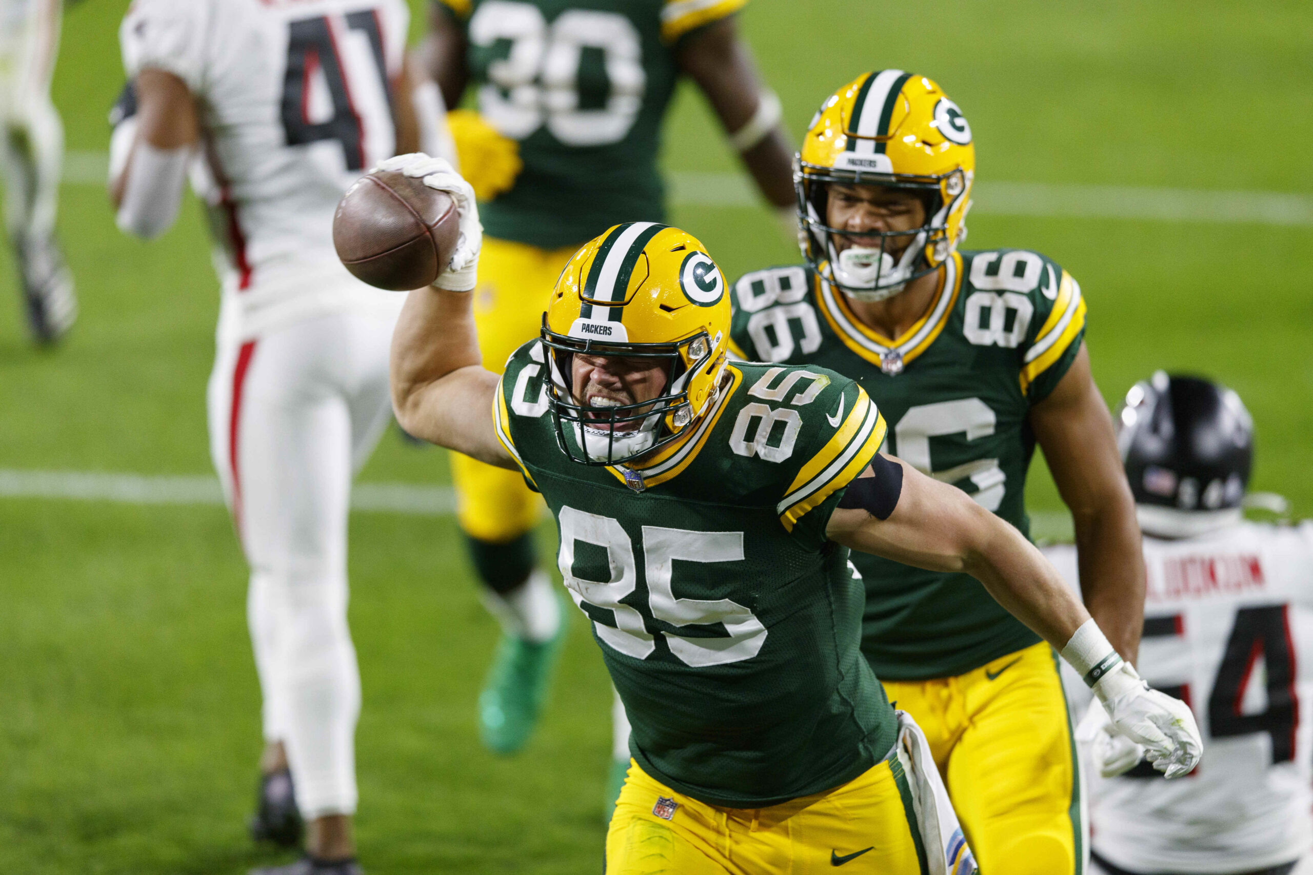 Robert Tonyan roars after five touchdowns in three weeks.